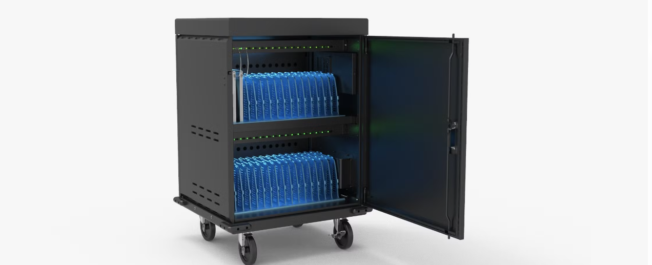 Charging cabinets typically include multiple charging slots and a built-in charging system, designed for storing and charging various mobile devices (such as tablets, laptops, and mobile phones). Cable management is an additional function of the charging cabinet, which helps users avoid cable clutter and ensures an orderly charging process through reasonable internal structure design, fixed slots, and proper layout of cable storage areas.